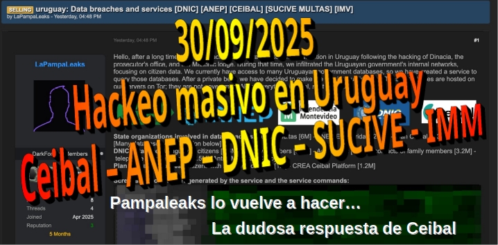 El día 29/09/25 se hizo público en un foro de la Dark Web por parte del grupo Pampaleaks un nuevo hackeo a organismos del Estado uruguayo. Varias empresas y organizaciones internacionales dieron cuenta del ataque en el que detallan que obtuvieron millones de datos personales de ciudadanos. Además, declaran que han copiado esa información a …